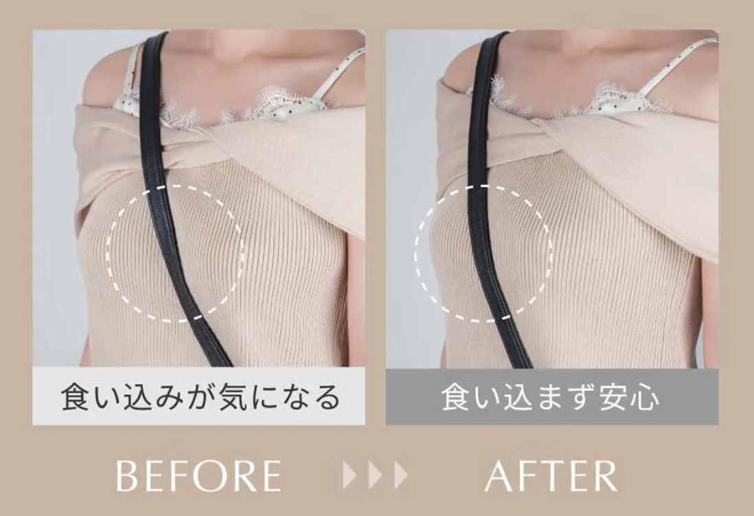 また、胸が強調されるのが嫌だった方でも、気にせず使える設計。食い込みにくいバッグ形状で快適な着け心地です。