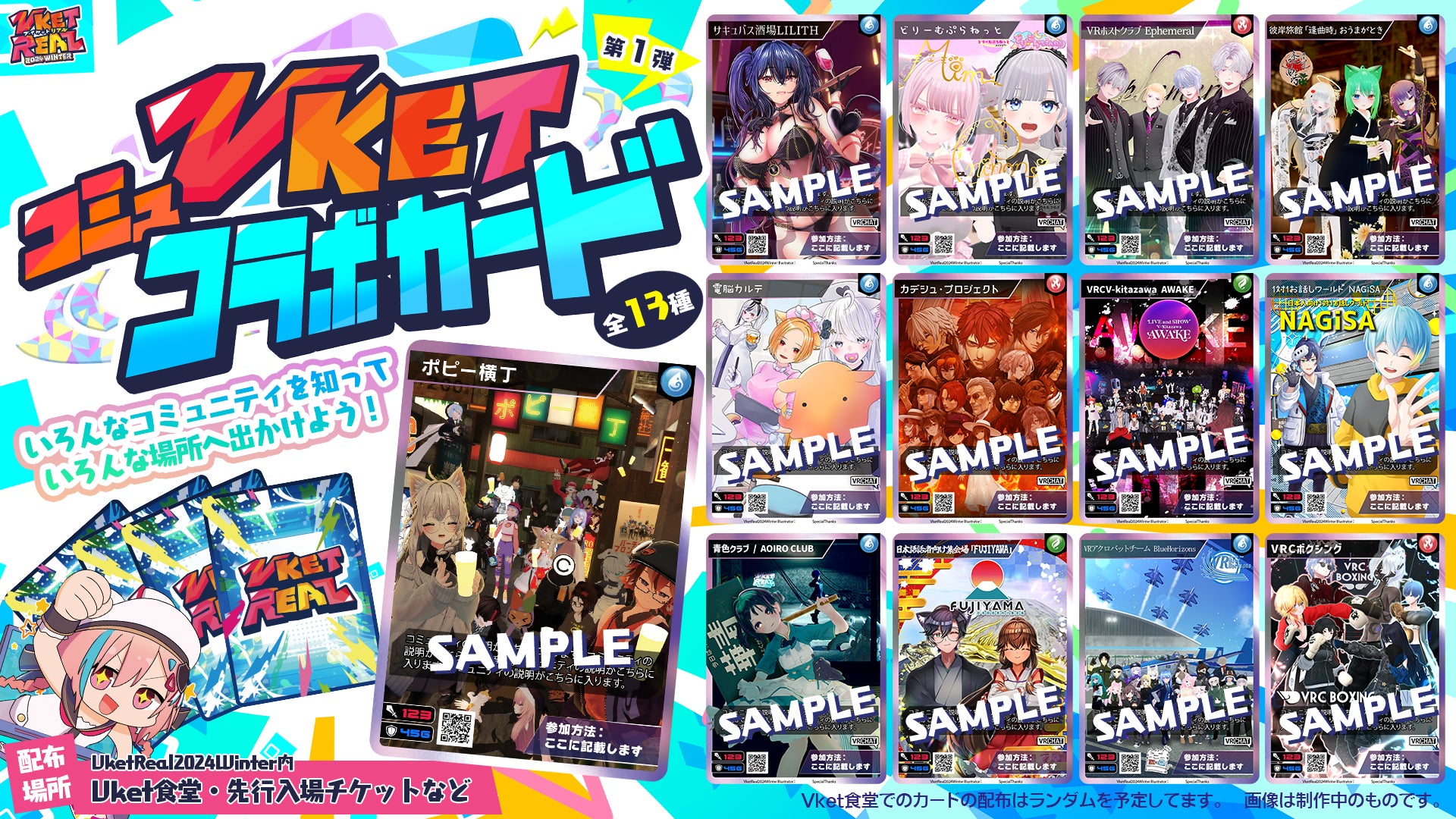 さらに購入者特典として、VRChatの人気コミュニティとコラボしたトレーディングカード「Vketコミュコラボカード」もプレゼントします。フードメニューの一覧は後日公開します。