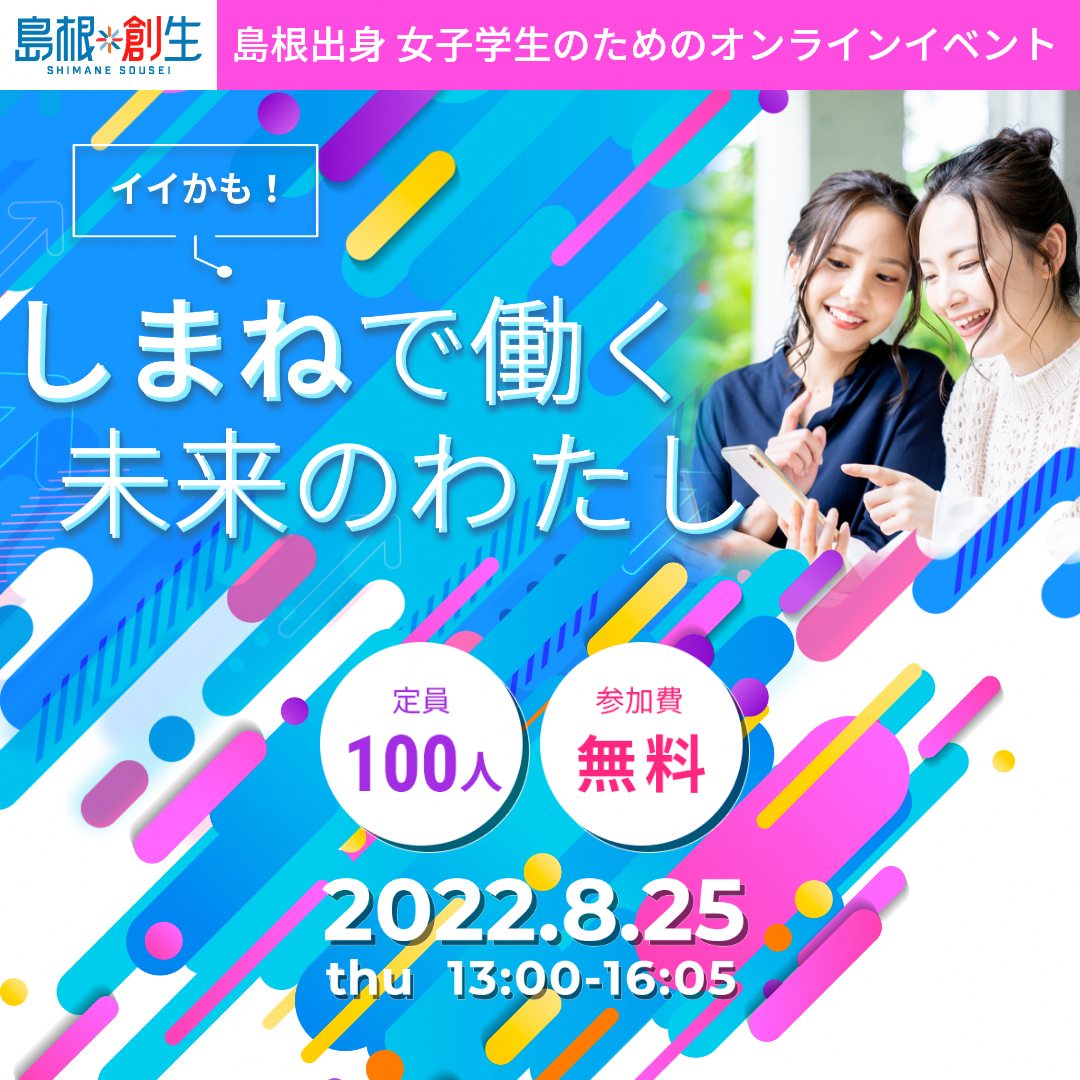 県内企業でイキイキと自分らしく働く女性社員との交流を通して、県内に多くの魅力的な職場があることを島根県出身の女子学生に広く伝えることを目的として、オンラインイベントを開催します!