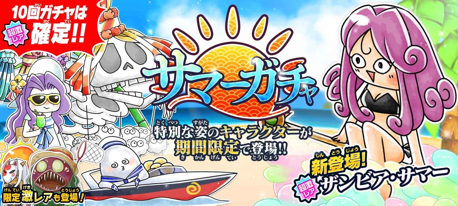 ゆるゲ大戦争製作委員会(配信・企画:東映アニメーション株式会社、企画・開発・運営:ポノス株式会社)は、人気アニメ『ゲゲゲの鬼太郎』を題材としたスマートフォン向けゲーム『ゆる~いゲゲゲの鬼太郎 妖怪ドタバタ大戦争』(略称:ゆるゲゲ)におきまして、新超激レア「ザンビア・サマー」が登場する「サマーガチャ」の開催をお知らせいたします。