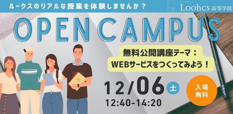 ルークス高等学院(東京都渋谷区)は、2025年12月6日(土)に中学生・高校生および保護者を対象とした無料公開講座「WEBサービスをつくってみよう!」を開催します。本イベントでは、在校生と一緒に実際の授業を体験しながら、Webサービス開発の基礎やアイデアを形にする楽しさを学べます。