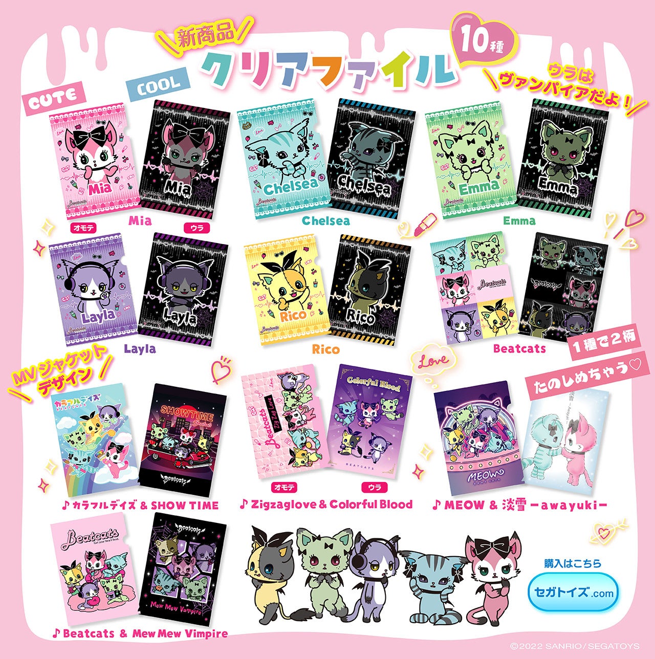 本日配信の楽曲『Delicious Beat』は、ドキドキやワクワクの応援ソングです。ハートから生まれるドキドキの色が大好物のBeatcatsが、不安な時やワクワクが止まらない時、どんなときも一緒にいてくれる心強さが感じられる一曲になっています。Beatcats公式YouTubeにて、ミュージックビデオ公開を行うほか、今回も音楽配信サイトにてデジタルシングルの配信も行います。また、楽曲の配信に合わせてセガトイズ ドットコムでは、過去に配信したデジタルシングルのジャケットデザインや、ヴァンパイア姿のデザインを使用したクリアファイルが新登場いたします。ほかにも、ヴィレッジヴァンガード先行で、Beatcats推しをアピールできるアクリルキーホルダーや缶バッジ、普段使いしやすいタオルやミニトートバッグ、フラットポーチなどを発売いたします。春からの新生活でもBeatcatsを近くで感じられる展開になっています。