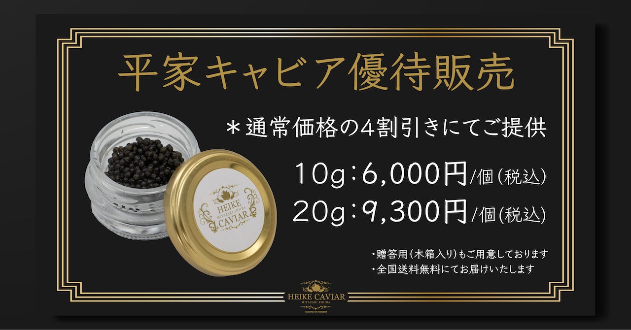 キャビア王国が製造・販売を手がける自社ブランド「平家キャビア」の商品を特別価格にてご提供