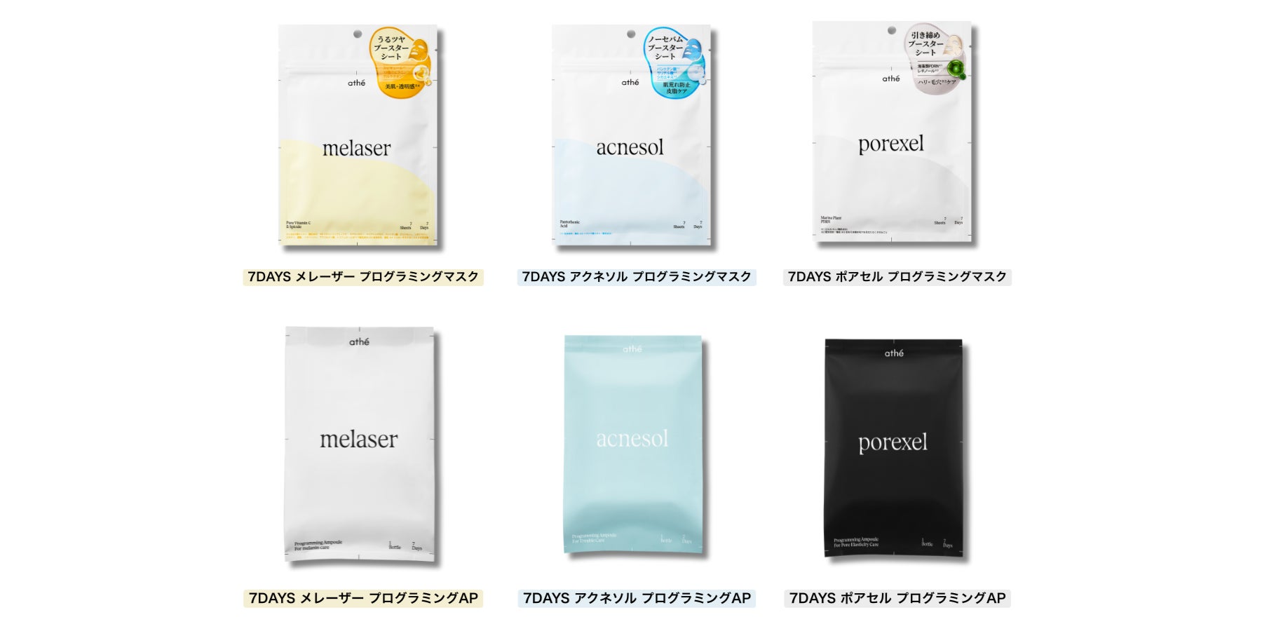イベントで展示された商品は全部で6商品。7DAYS アクネソル プログラミングAP・7DAYS ポアセル プログラミングAPは会場限定販売となりました。その他4つの商品につきましては、オンラインではQoo10・楽天市場・Amazon の日本公式ショップにて販売中、オフラインでは6月2日より順次販売開始いたします。