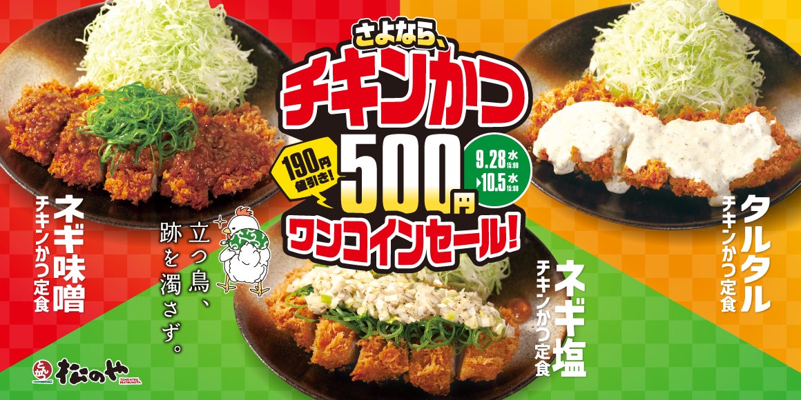 【松のや】セール終了後に終売のチキンかつ「チキンかつワンコインセール」開催中!