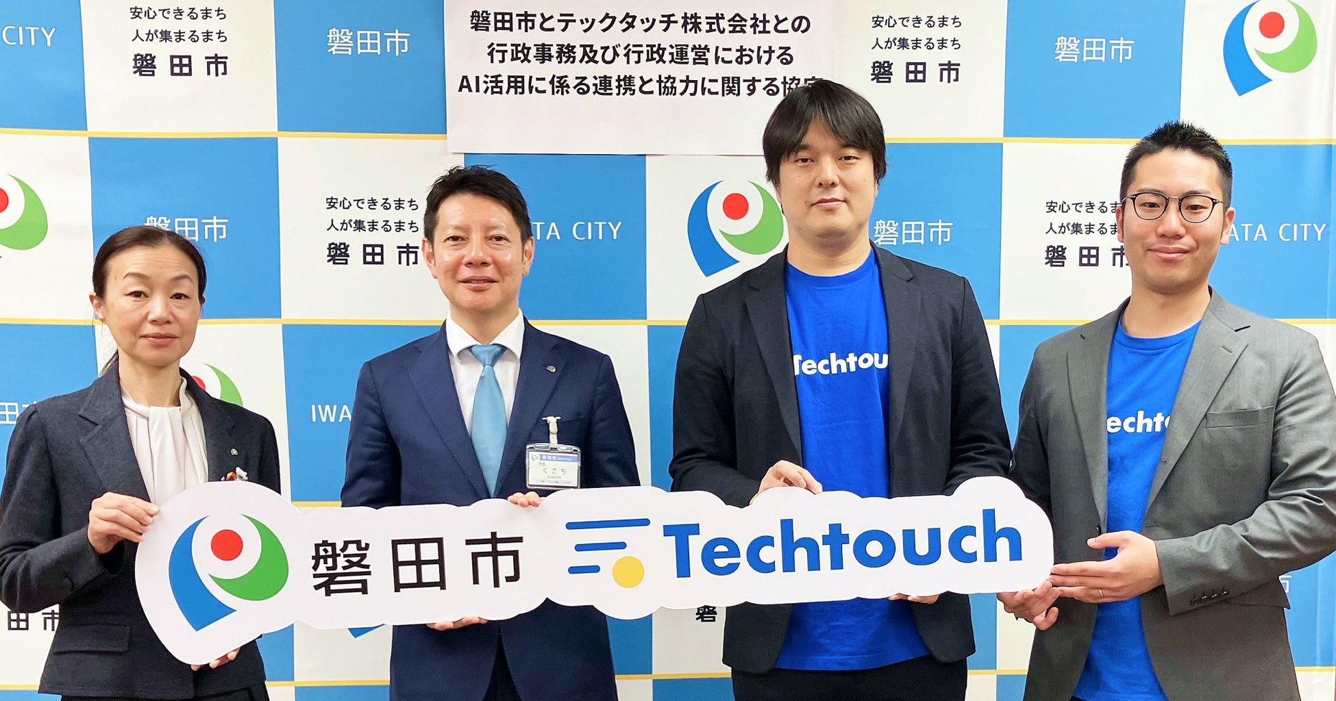 AI型次世代DAP「テックタッチ」を開発・提供するテックタッチ株式会社(本社:東京都中央区、代表取締役 CEO:井無田仲、以下「テックタッチ」)は、静岡県磐田市(市長:草地 博昭)と、自治体事務におけるヒューマンエラーをAIで未然に防ぎ、行政運営の質を抜本的に高めることを目的とした連携協定を締結いたしました。連携協定式は、2026年2月12日に磐田市役所で行われました。