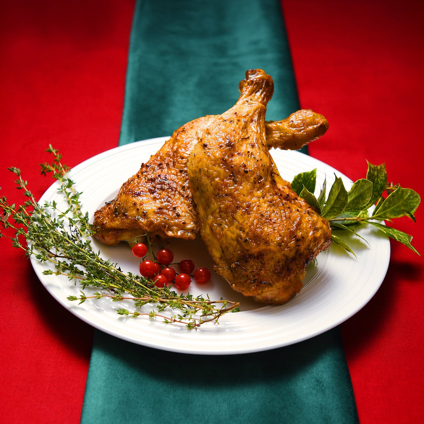 香辛料で一昼夜しっかりと味をしみ込ませ、オーブンでじっくりとローストしました。皮はこんがりと、中はしっとりとやわらか。ジューシーな旨みと豊かな香りが、口いっぱいに広がります。