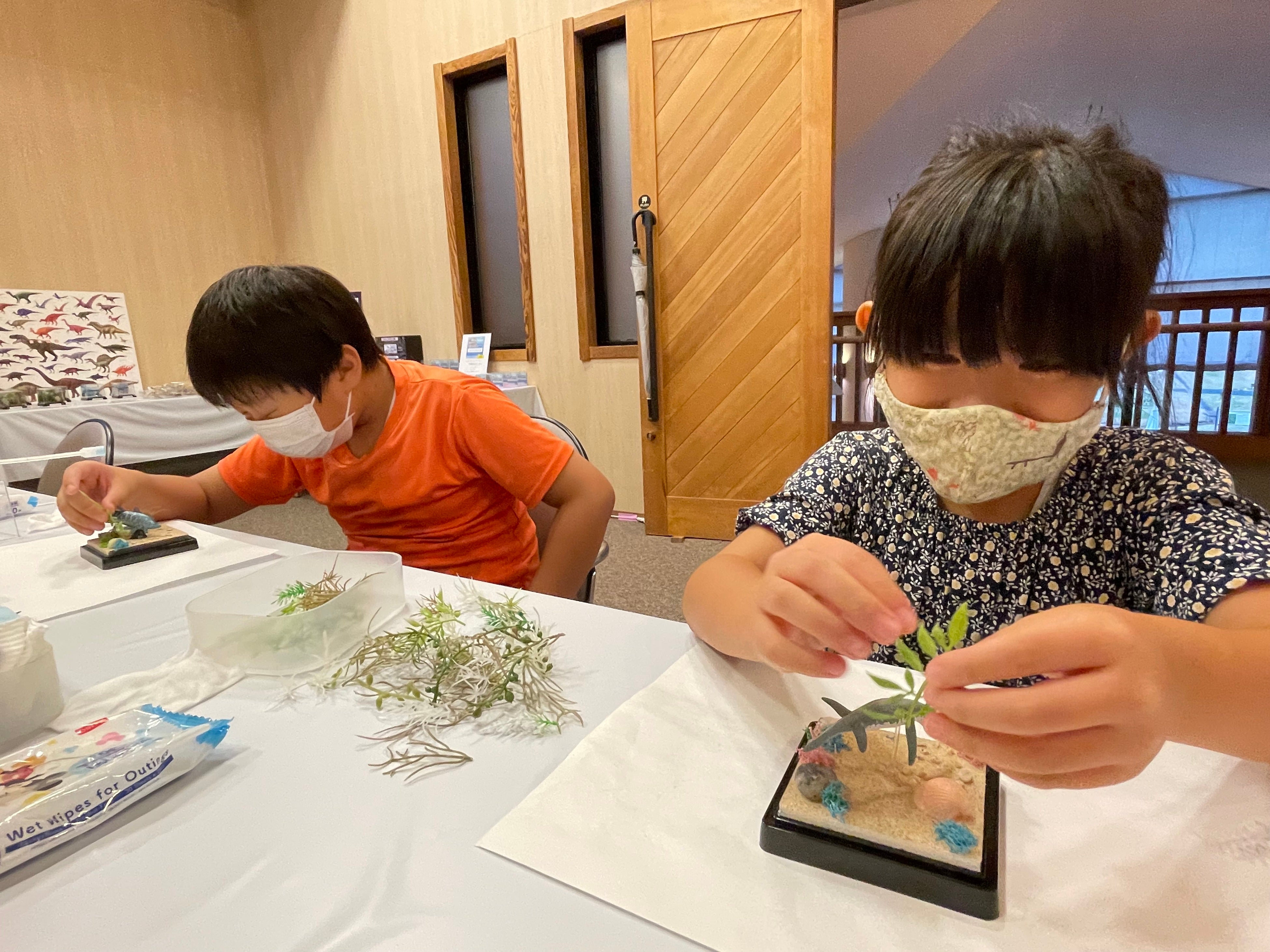 またオータムフェスタでは、当日限定で恐竜ジオラマ制作体験、自衛隊の車両展示・体験試乗や、オリジナルTシャツが作れるシルクスクリーン体験、ミニドローンの操縦体験などの様々なワークショップや体験イベントが行われます。恐竜ジオラマ制作体験は、恐竜に出会える宿作りの一貫として2021年よりホテルハーヴェストスキージャム勝山ご宿泊のお客様向けに、夏休み期間限定で体験会を実施しているイベントです。2022年は夏休み期間のみの営業で約1,300名の方にご利用していただくなど、”恐竜王国かつやま”ならではの貴重な体験として多くのお客様から好評を得ております。プロのモデラーがインストラクターを務め、お子様でも本格的なジオラマが制作できることも魅力です。