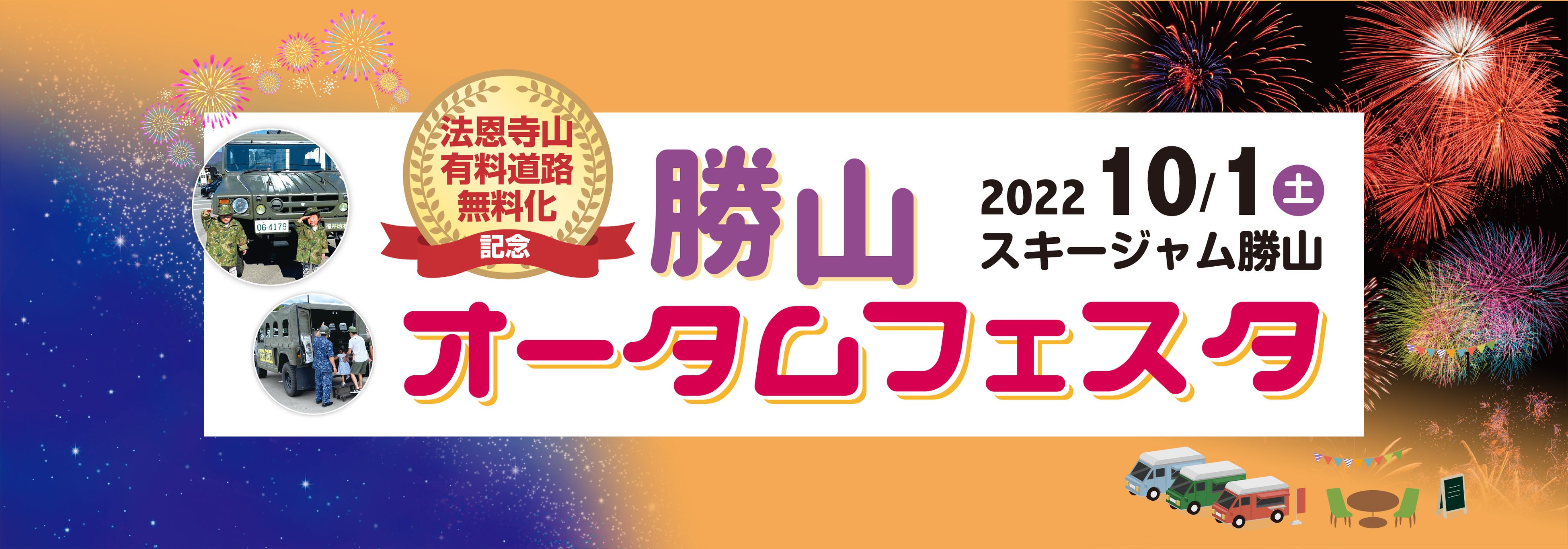 スキージャム勝山(福井県勝山市、統括総支配人:吉岡 厚志)は、2022年10月1日(土)に法恩寺山有料道路無料化を記念して、勝山市が主催する「勝山オータムフェスタ」を開催することをお知らせいたします。