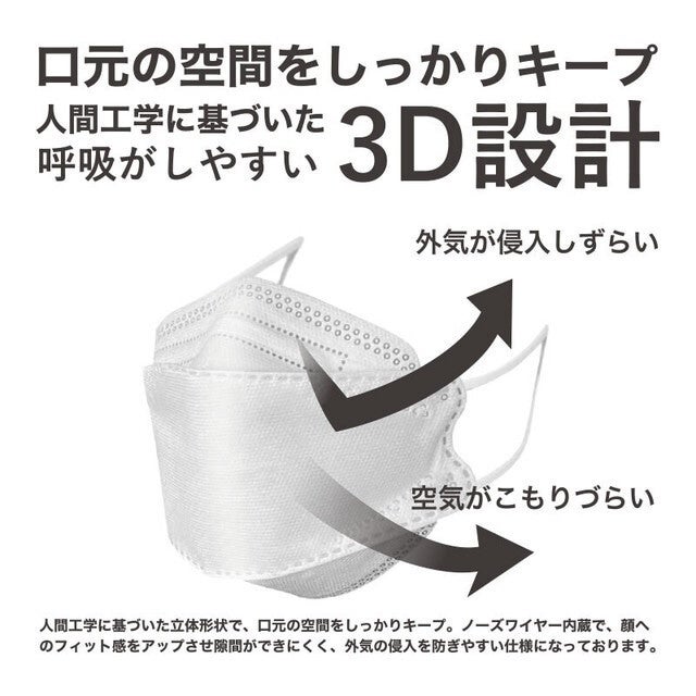 4層構造の3D立体型マスク。医療現場でも使用可能な感染防止用サージカルマスクです。