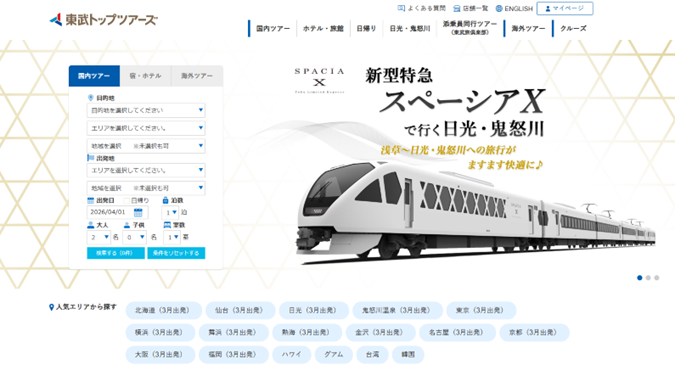 対象サイト :東武トップツアーズ旅行予約サイト