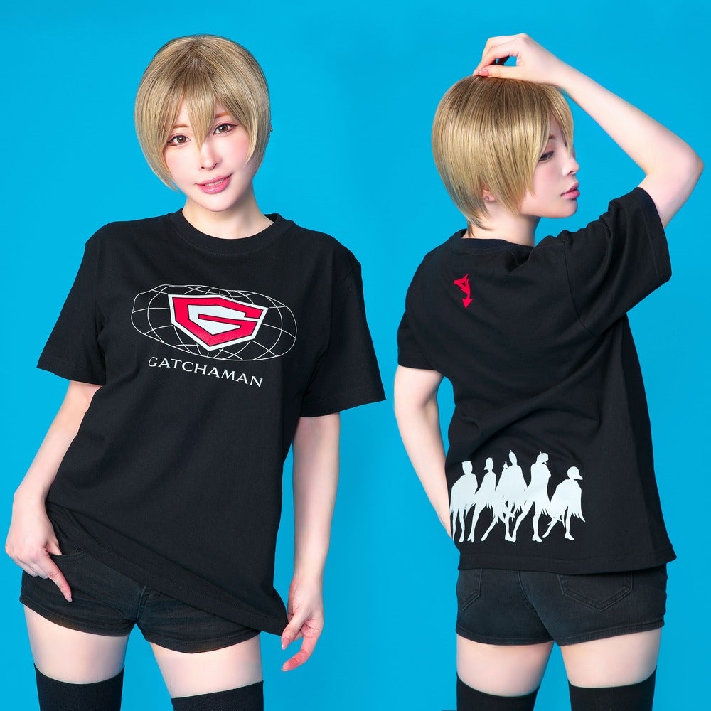 ブラックボディにフロントの「Gマーク」が映える「ガッチャマン」Tシャツ登場!バックに踊る白い影は誰だ!シンプルデザインだから普段使いでも着やすい、ファンなら1枚は持っておきたい必須アイテム!