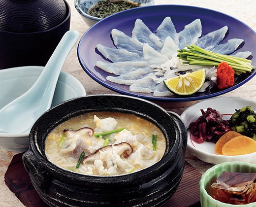 対象商品は、イートインメニューの中で一番人気の「ふぐ雑炊刺身セット」です。厳選したとらふぐのみを使用した刺身と雑炊は、春帆楼伝統の料理です。