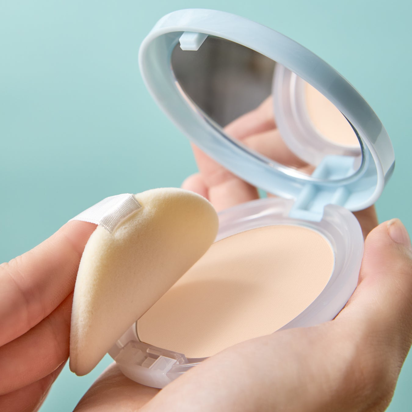 お顔を包み込むように塗れる大判パフ付きでありながら、薄型の鏡付きコンパクトで、持ち運びに便利な要素を詰め込みました。これ1 つで夏を快適に過ごせる、こだわりのUV パウダーです。