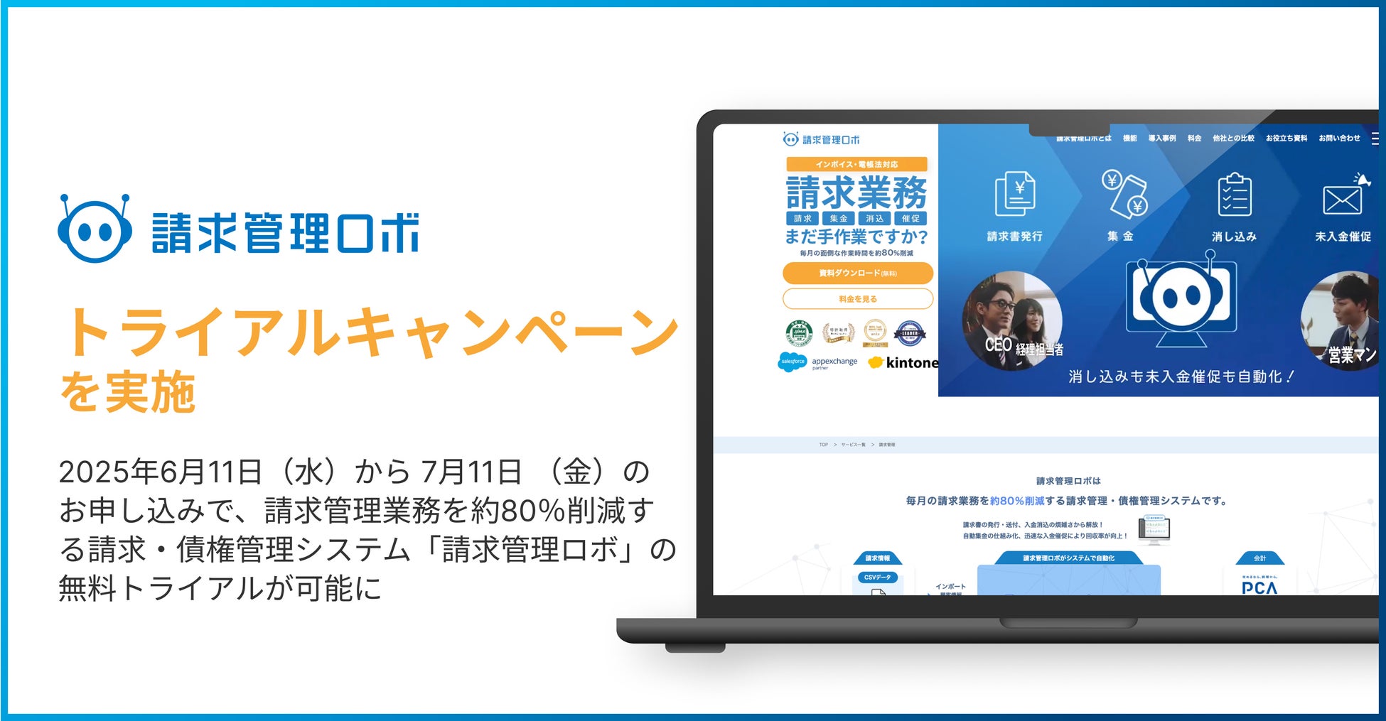 請求管理業務を約80%削減する請求・債権管理システム「請求管理ロボ」のトライアルキャンペーンを開始