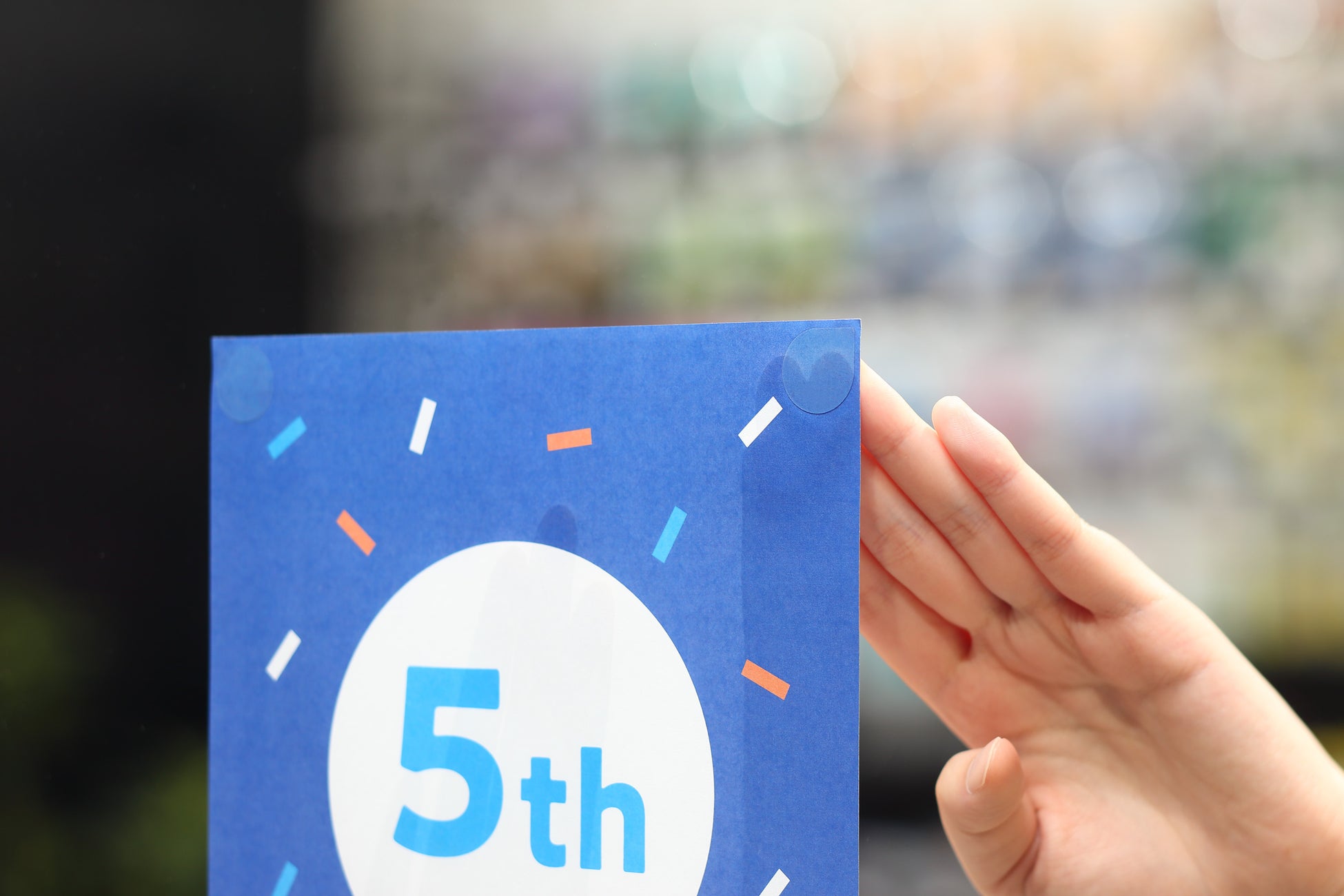 店舗の告知や案内に 貼りやすくはがしやすいシールタイプで新登場