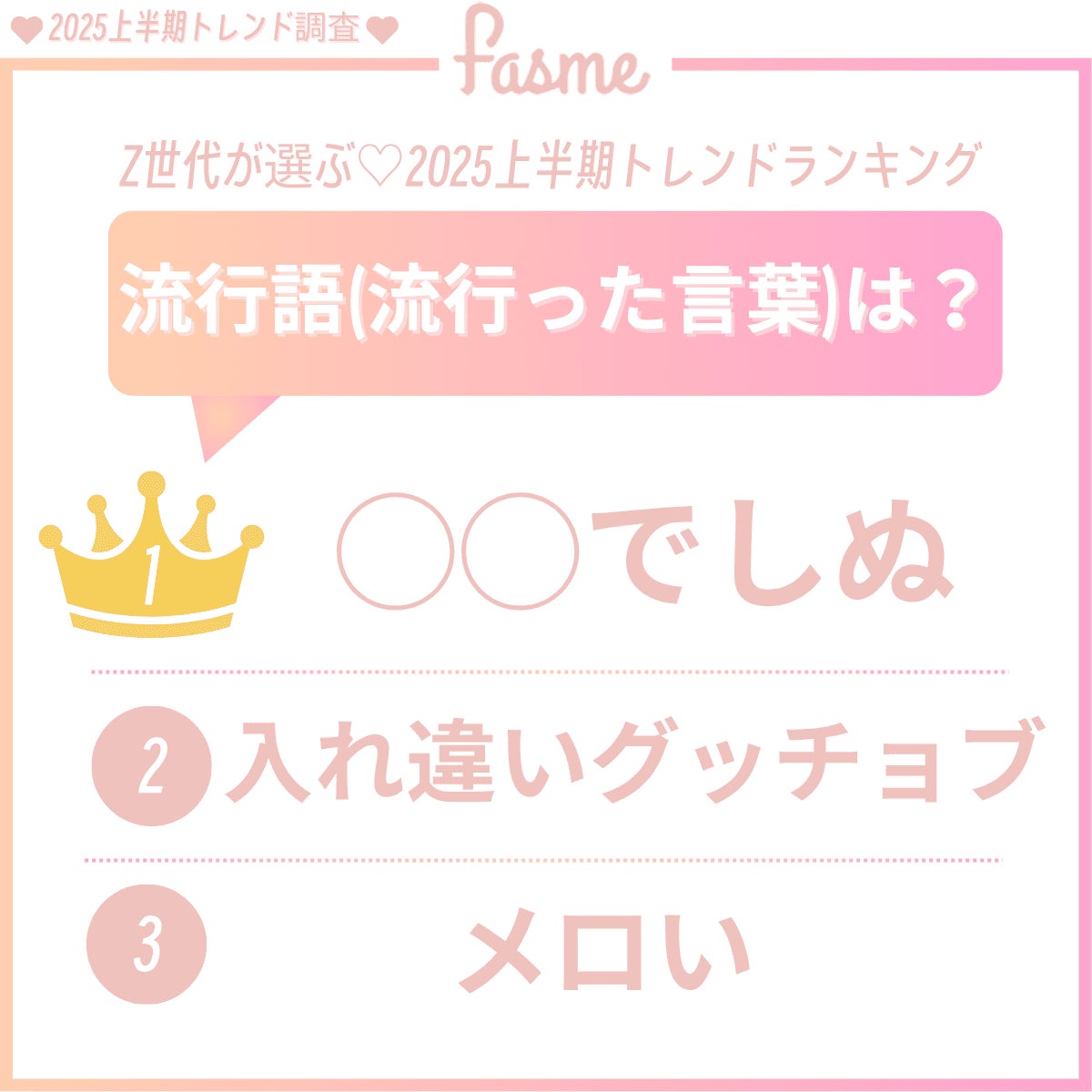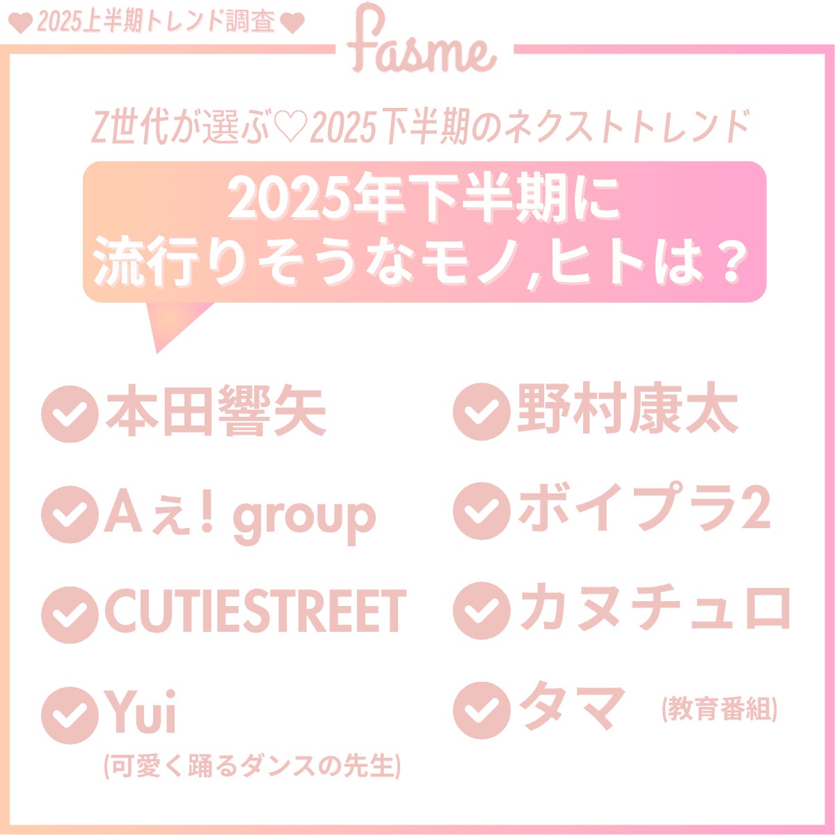 fasmeでは、SNSやエンタメの動向から、アンケート結果をもとに2025年下半期のネクストバズ予備軍を独自予想しました。