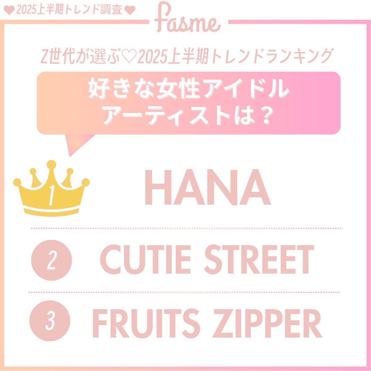 1. 2025上半期「好きな女性アイドル&アーティスト」TOP3