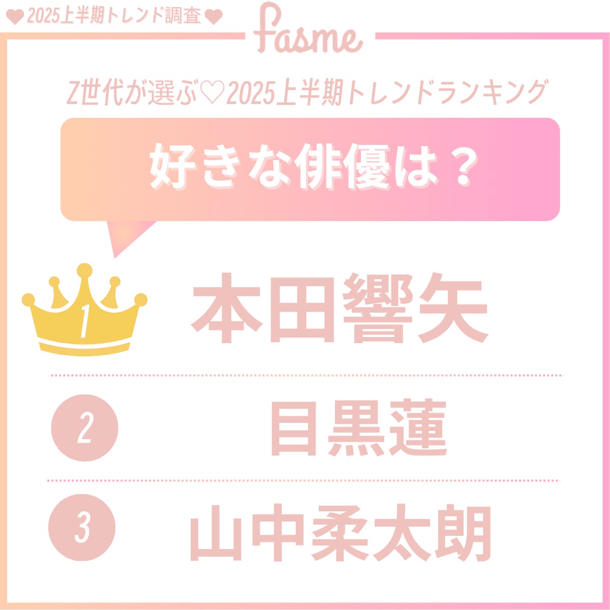 3. 2025上半期「好きな俳優」TOP3