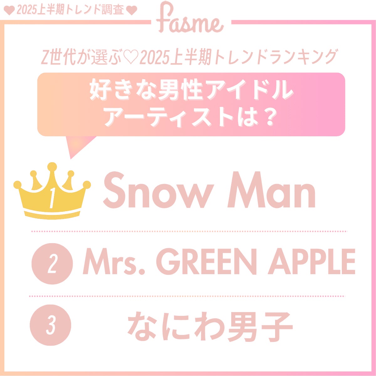 2. 2025上半期「好きな男性アイドル&アーティスト」TOP3