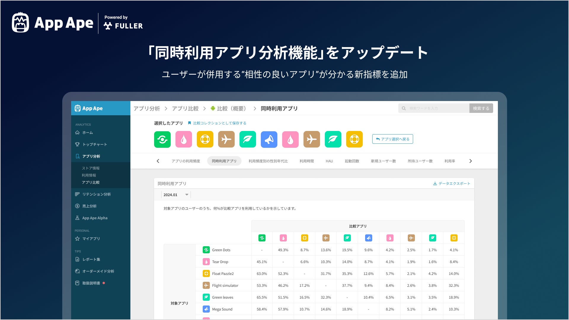 App Ape「同時利用アプリ分析機能」に新指標を追加