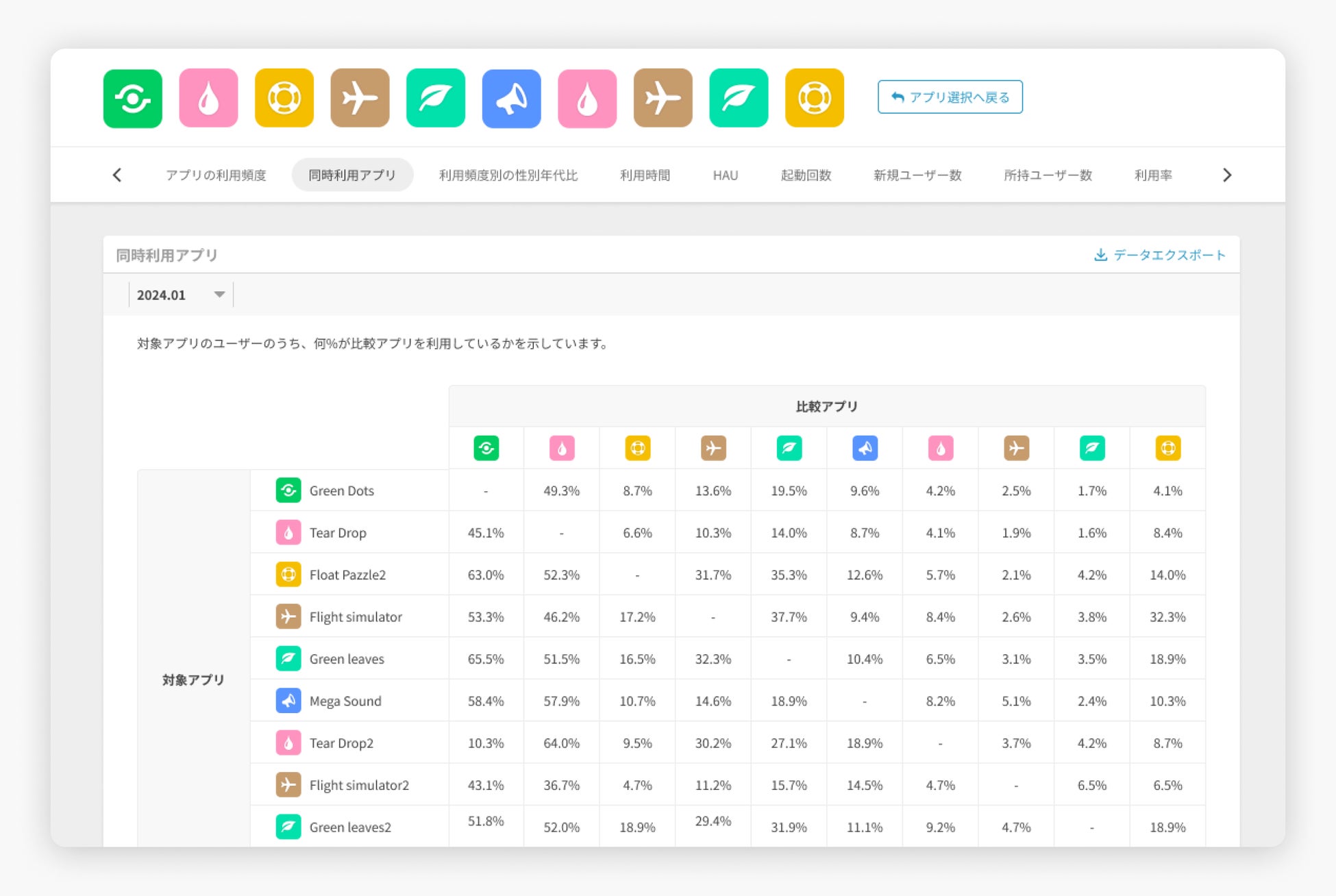 直感的なインターフェースで複数のアプリの併用状況を簡単に分かりやすく把握できます。