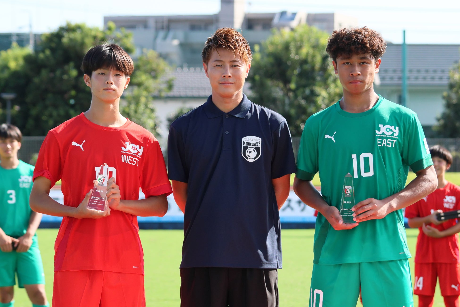 最優秀選手賞(MVP)には、ALL WESTキャプテン 13番、MF 花元 誉絆選手(ヴィッセル神戸U-15)、敢闘賞にはALL EAST 10番、MF オツコロ 海桜選手(FCラヴィーダ)、ALL WEST 10番、FW 加賀野 統選手(ガンバ大阪ジュニアユース)が選出されました。