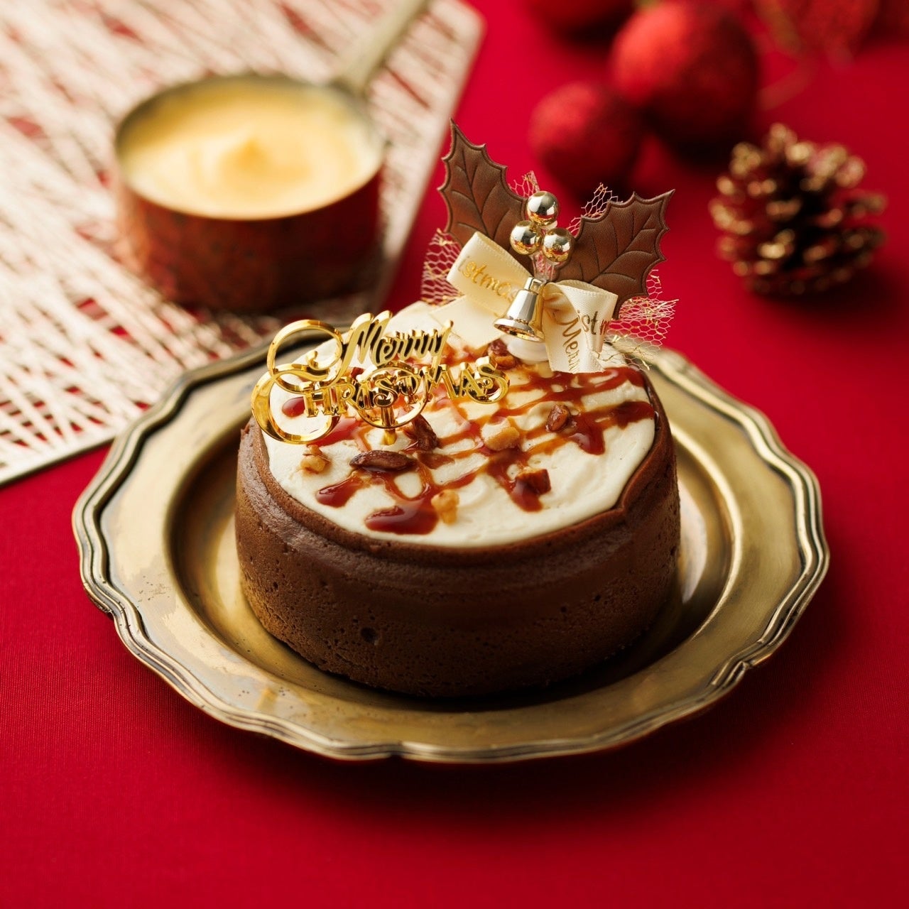ビターな風味のチョコレートスフレに、当店自慢のなめらかなカスタードクリームをとじ込めたケーキ。トッピングのクリームの上にはほろ苦さがクセになるカラメルソースと、殻付きのローストアーモンドをのせて、カリッと異なる食感もプラスしました。
