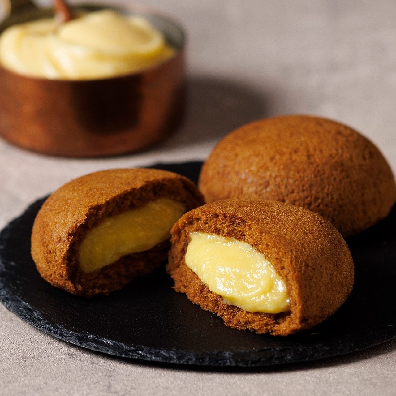 阿蘇・小国ジャージー牛乳を使用したなめらかなカスタードクリームを、九州産クリームチーズのふわふわのスフレでとじ込めました。