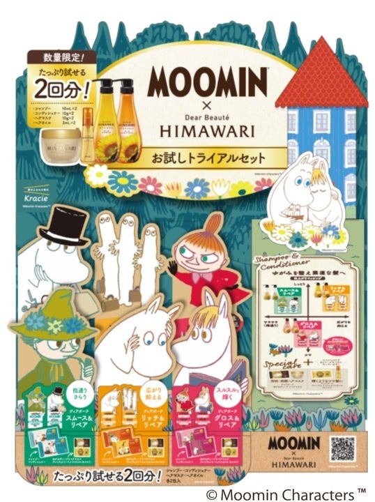 クラシエホームプロダクツは、年齢による髪のうねり、くせ、パサつきの原因となる「髪のゆがみ」(※1)を整え、素直な髪へ導く「ディアボーテ HIMAWARI」から、人気キャラクター「ムーミン」の限定デザインの「トライアルセット」を、2022年5月27日(金)に数量限定で発売いたします。ディアボーテの「シャンプー・コンディショナー」と「ヘアマスク」、「ヘアオイル」のトライアルサイズをセットにした限定品です。「ムーミン」コラボデザインを楽しみながら、気軽に自分に合う「髪のゆがみケア」を見つけていただけます。
