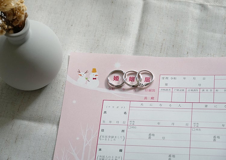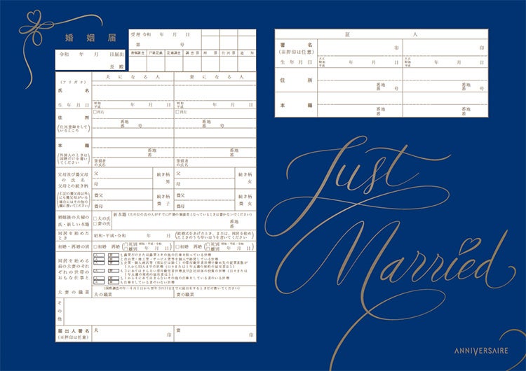 婚姻届の提出日が「結婚記念日」となることから、婚姻届とともに写真を撮り、SNSに投稿するカップルも多く見られます。アニヴェルセルの婚姻届は、おふたりらしいデザインを豊富な種類から選べ、大切な結婚記念日を素敵な想い出として残せることから多くの方にご好評いただいています。