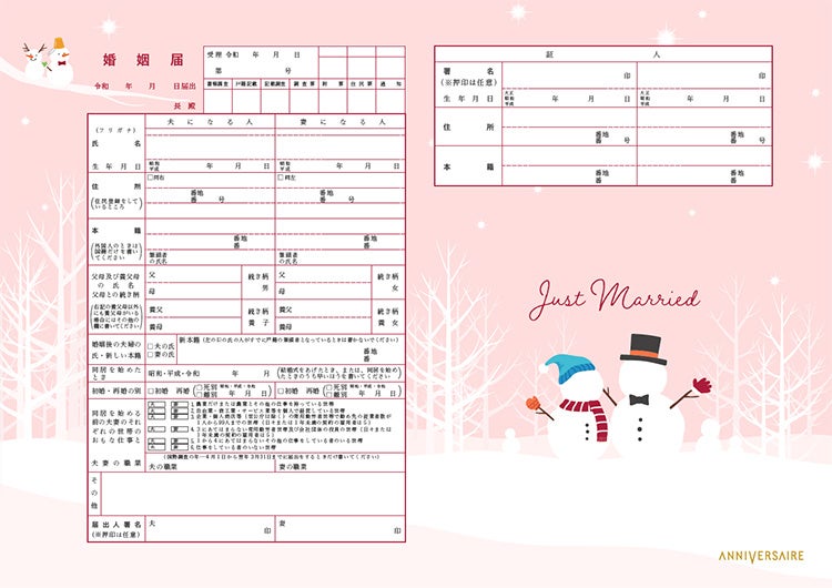 アニヴェルセルオリジナル婚姻届 冬テーマ新デザイン4種