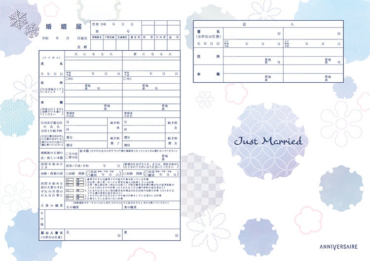 70万組以上が選んだアニヴェルセルオリジナル婚姻届 - 冬をテーマにしたデザイン4種が新登場! -