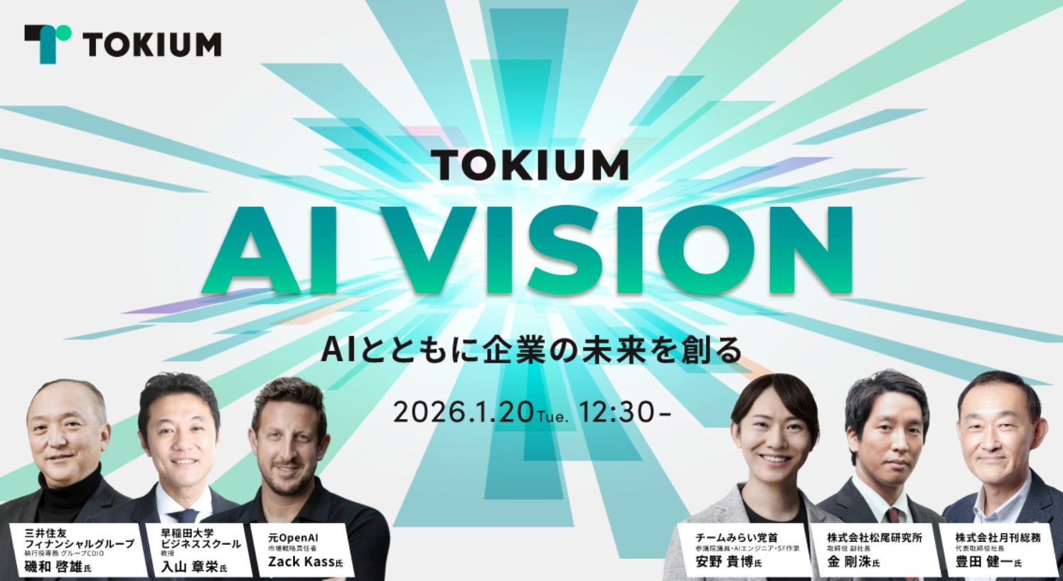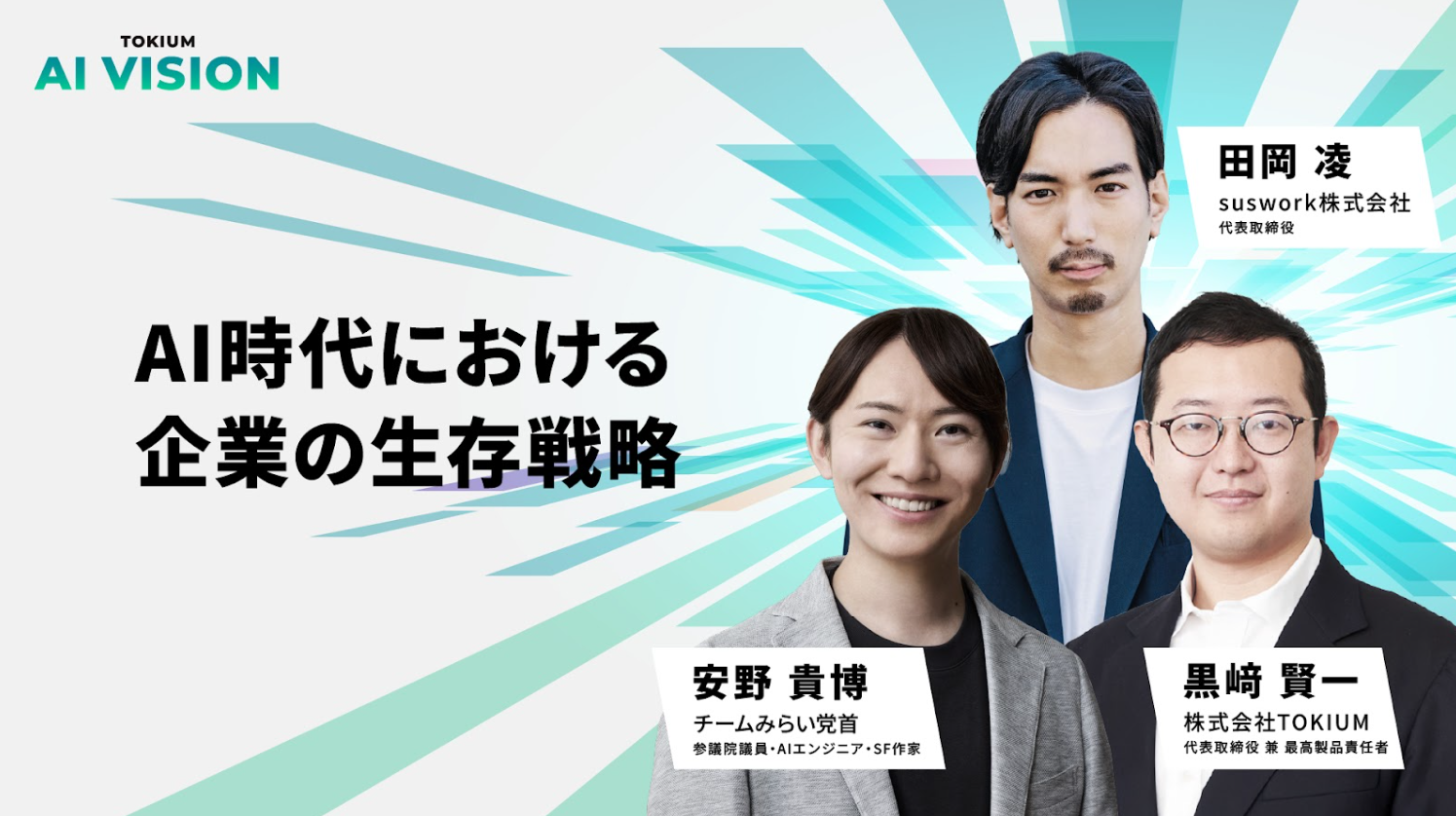 経理AIエージェントを提供する株式会社TOKIUM(本社:東京都中央区、代表取締役:黒﨑 賢一、以下「TOKIUM」)は、2026年1月20日開催のオンラインカンファレンス「TOKIUM AI VISION」より、安野貴博氏が出演するセッション「AI時代における企業の生存戦略」のショート動画を公開しました。