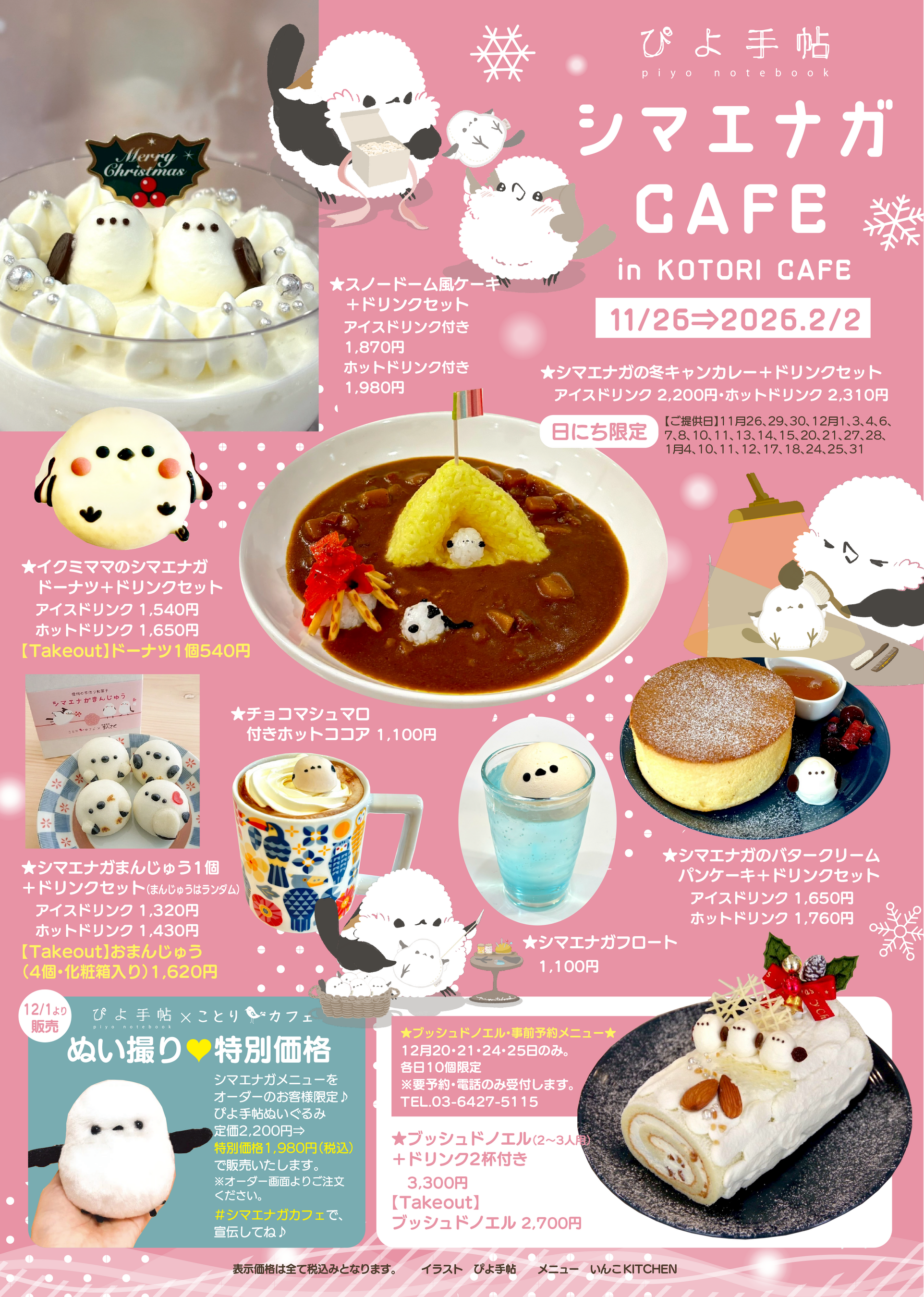 「小鳥たちを眺めながら、まったりコーヒータイム♪」をコンセプトにした「ことりカフェ上野本店」(http://kotoricafe.jp/)を運営する株式会社ことりカフェ(本社:東京都台東区 代表取締役 川部志穂)は、2026年1月29日より「ことりカフェ上野本店」及び、愛鳥家が集う即売会イベント「鳥フェス浅草2026」2026年1月31日・2月1日(https://kotoricafe.jp/torifes/1142)「ことりカフェブース」にて、シマエナガクリエイターの第一人者「ぴよ手帖」さんがイラストを担当された『学研のえほんずかん シマエナガのずかん』(発行所:株式会社 Gakken)を発売日(2/5)よりひと足早く先行販売いたします。