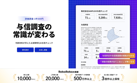 1件500円で与信調査の常識を覆す! 10,000社以上が利用するRoboRoboが、AIエージェント活用で“根拠ある与信調査”を実現する「RooboRobo AI与信チェック」をリリース