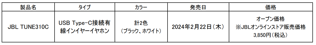 スマートフォンやタブレットなどあらゆるデバイスの端子がUSB Type-Cに統一されつつあることで、幅広いデバイスへの接続が可能になったUSB Type-Cの有線イヤホンは販売数を伸ばし、急激な成長を続けています。このような背景を受け、今回発売する「JBL TUNE310C」は、新たに接続部分にUSB Type-Cを採用した有線型インイヤーイヤホンです。