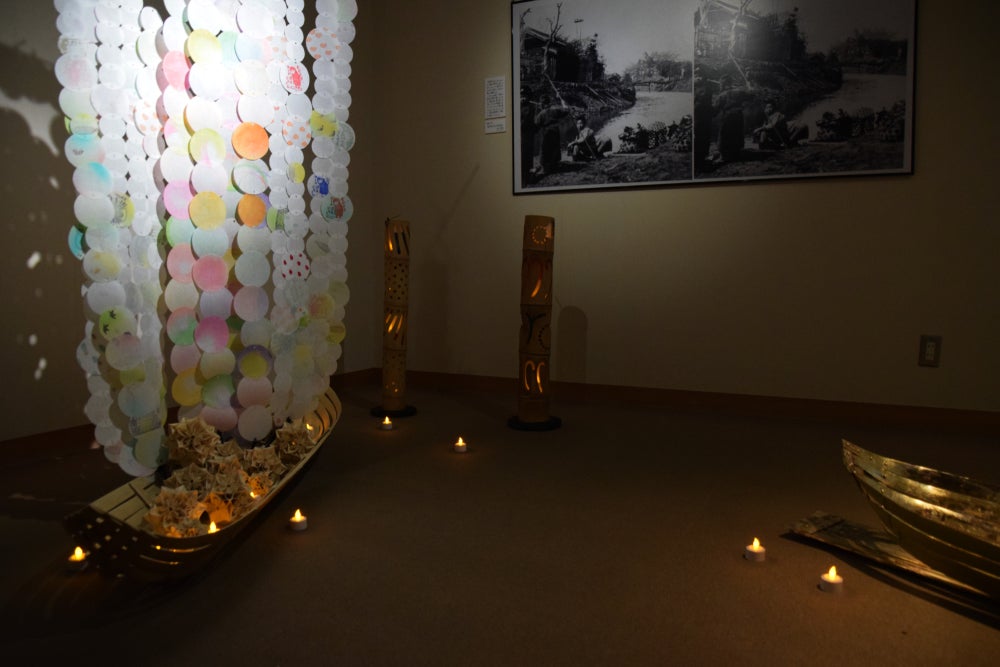例年8月9日・10日に開催される松戸地域のお祭り「四萬六千日献灯(しまんろくせんにちけんとう)松戸宿(まつどしゅく)坂川献灯まつり」とのコラボレーション企画として、アーティスト・鄙里沙織(ひなさと さおり)さんのインスタレーション(即興展示)作品を、戸定歴史館展示室で公開中です。9月4日までの予定でしたが、好評を受けて延長し、さらにバージョンアップして参加型展示になっています。この機会にぜひご覧ください。