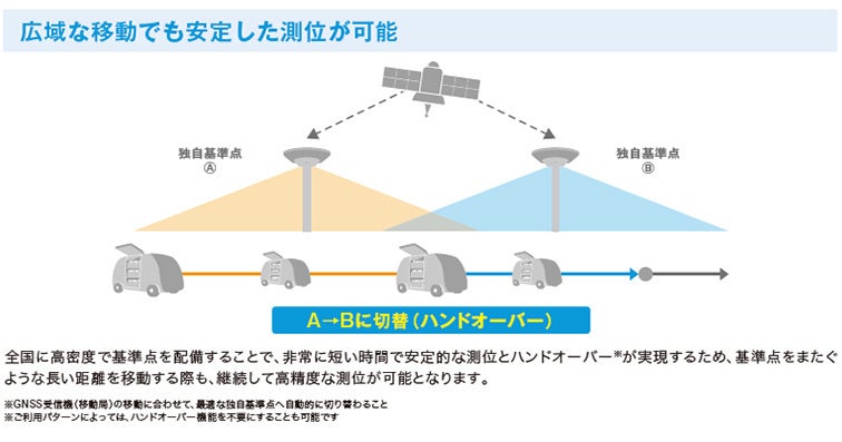 ※2:RTK(Real Time Kinematic)測位とは、固定局と移動局の2つの受信機を利用し、リアルタイムに2点間で情報をやりとりすることで、高精度での測位を可能にする手法のこと