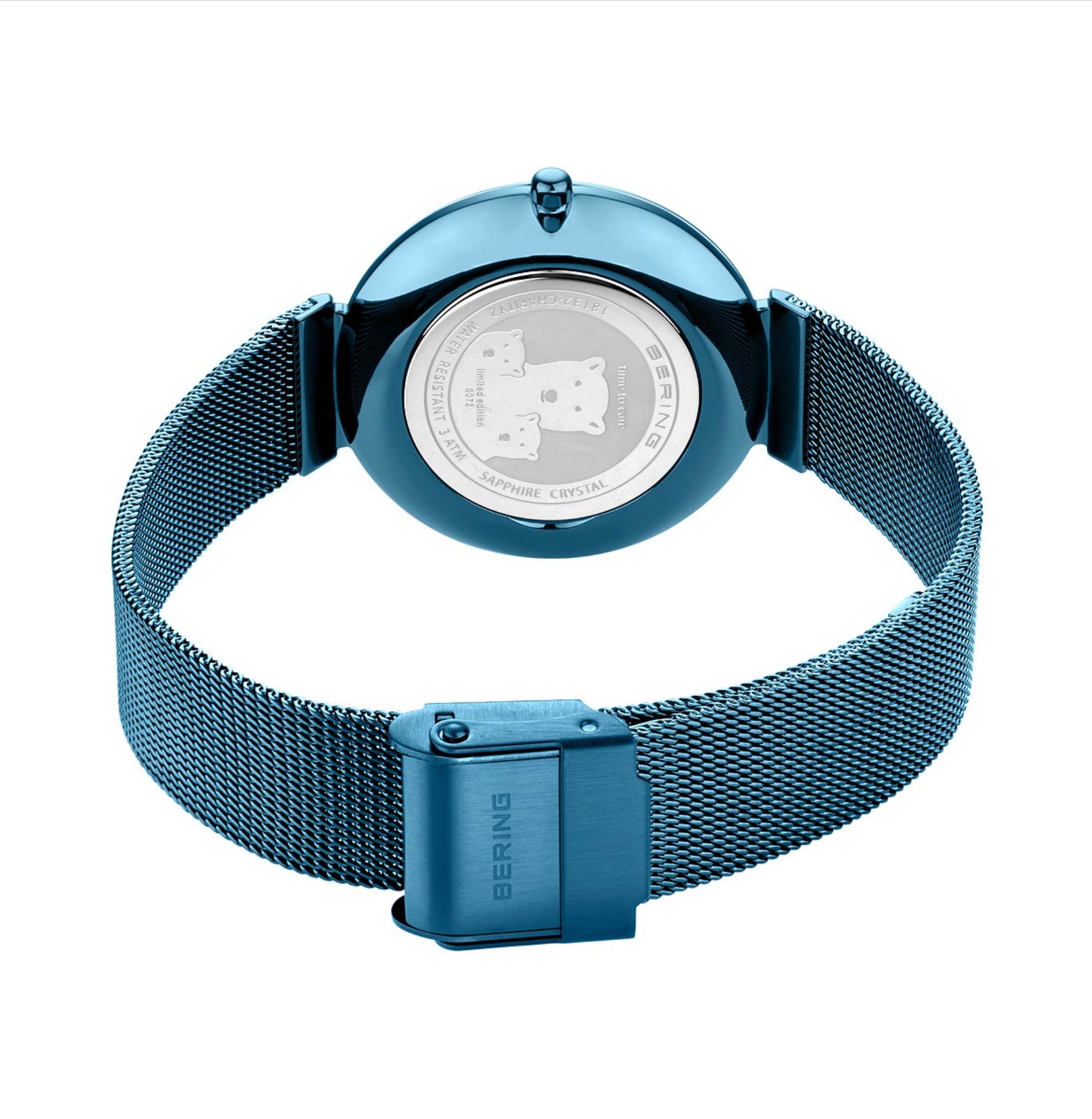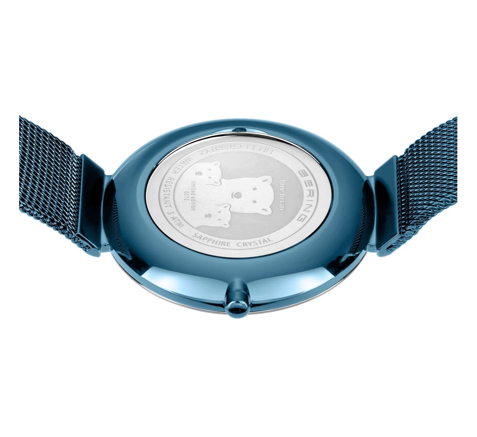 裏蓋には「time to care」シリーズの特徴であるシロクマの親子のデザインが施されています。