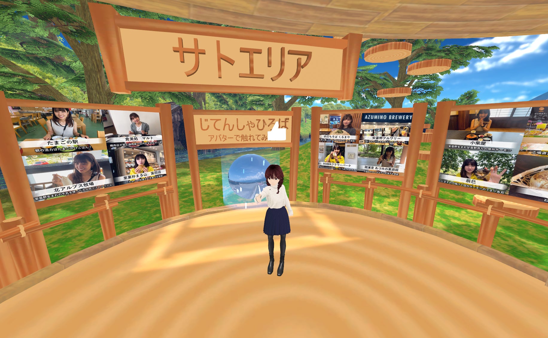 「安曇野観光メタバース」は北アルプスの美しい山々を背景に、清流や広大な田園風景が広がる安曇野市を体験できる空間です。現地のおすすめスポットが空間内で紹介されており、旅の計画を立てるのにも役立ちます。