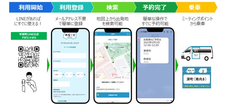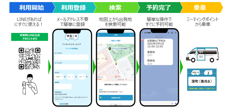 「のるーと宇美」の専用アプリをダウンロードしなくても、宇美町LINE公式アカウントを通じて配車予約が可能となるもの。