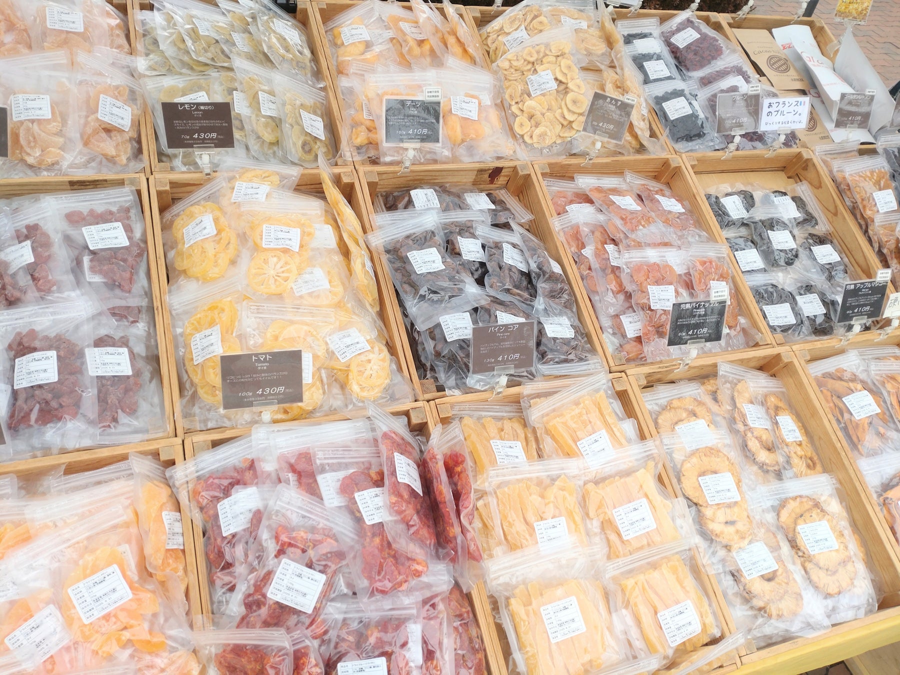地元・飯能出身、20年以上ドライフルーツを販売する「石川屋フーズ株式会社」の店主が自ら食べて目利きし、独自ルートで仕入れた世界各国のドライフルーツを約50種類のほか、お子さまにも人気のさつまいもや栗を使った商品も。