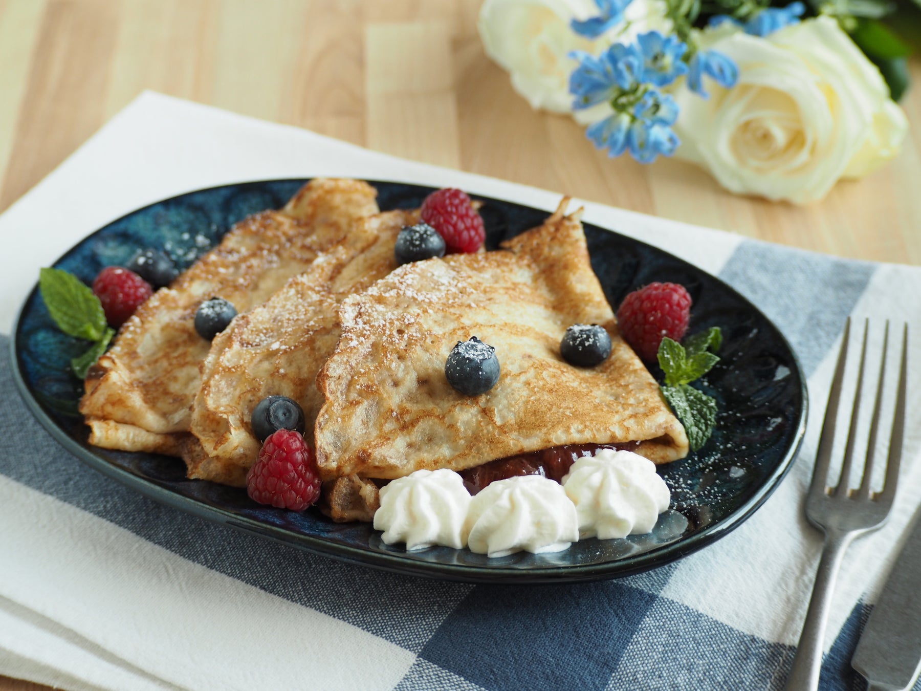ふんわり焼き上げたクレープに、ベリーやナッツ、はちみつ、季節の果物や北欧の食材を添えて、慌ただしい日常に「やさしいごほうび」をお届けします。