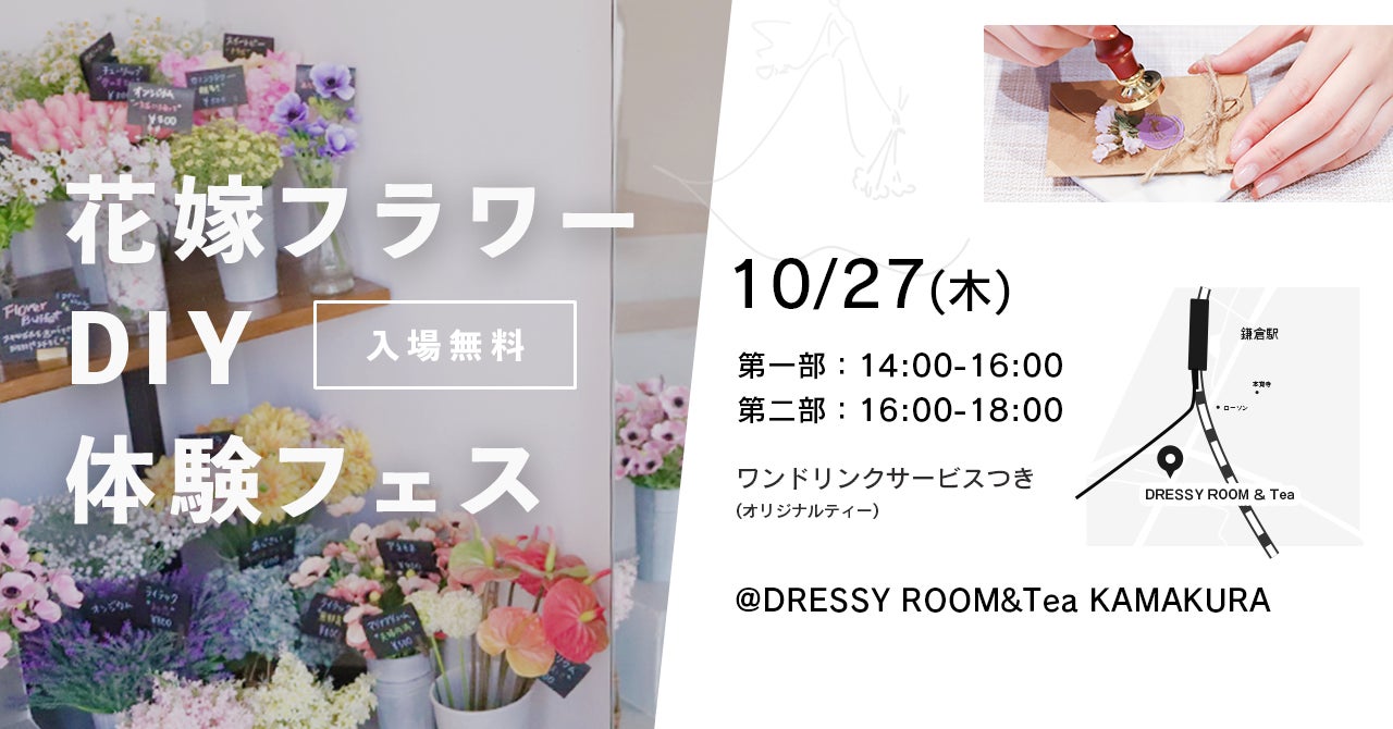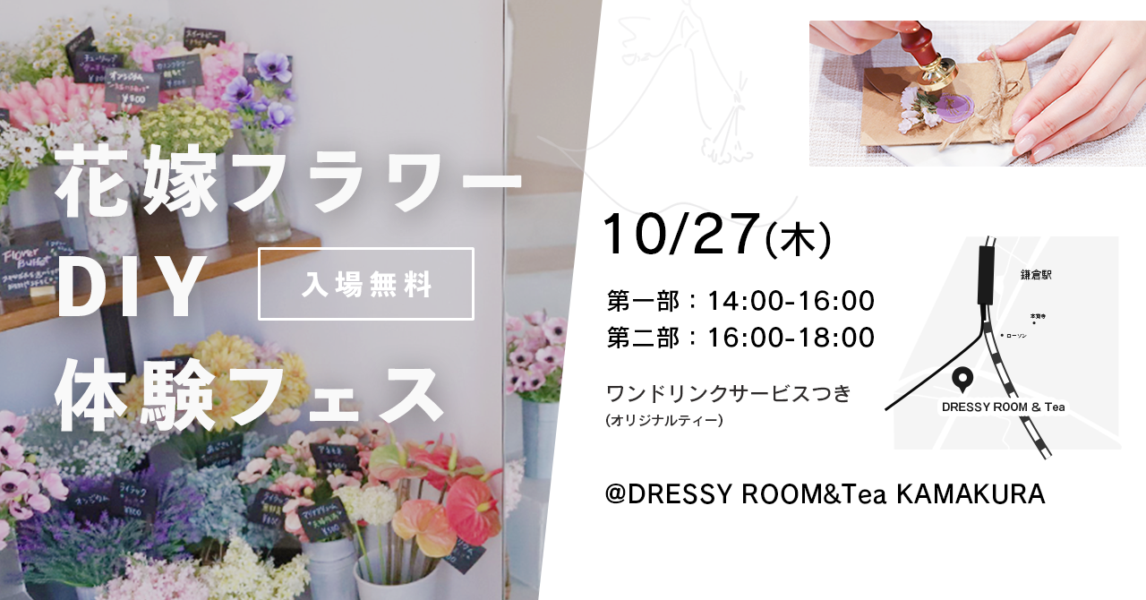 - 10/27(木)鎌倉で『花嫁フラワーDIY体験フェス』開催決定!