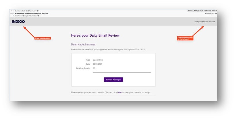 このリンクをクリックすると、認証情報を盗み取るために作られた偽のログインページにリダイレクトされます。攻撃者は緊急性を強調し、普段から見慣れているメールの検疫通知という形式を悪用することで、ユーザーに即座の対応を促す手法を取っていました。