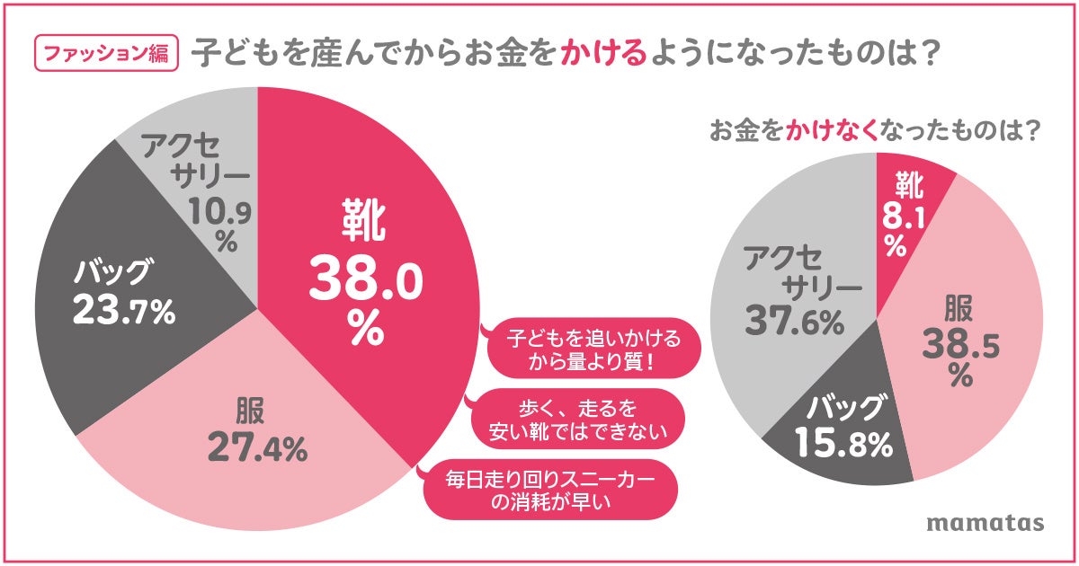 ちなみに「ファッション関連でお金をかけなくなったもの」は「服」38.5% 、「アクセサリー」37.6%。それぞれ「汚される」「引っ張られる」が主な理由でした。