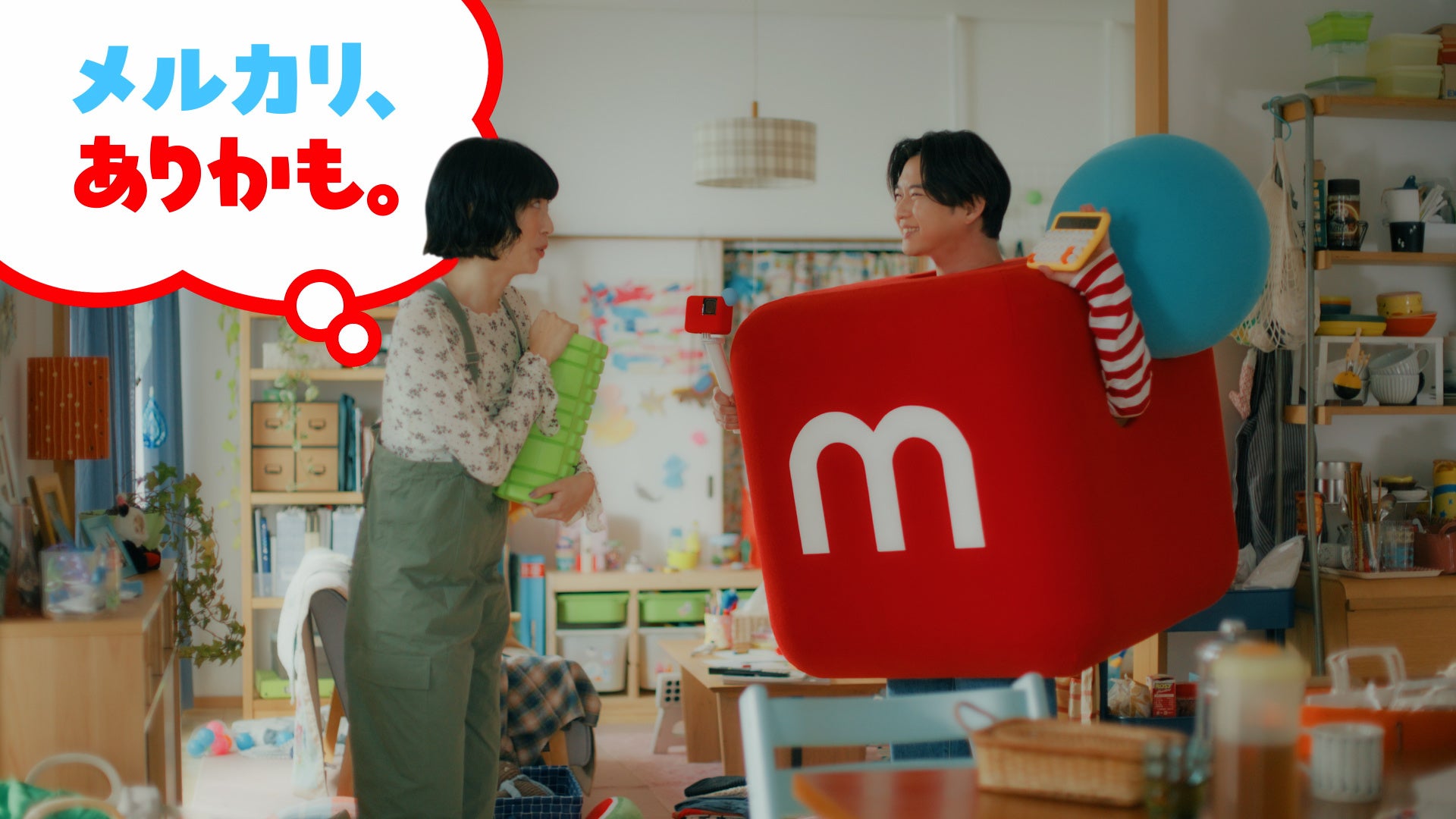 こうした背景から、今回の新CMでは「メルカリ、ありかも。」をテーマに、欲しかったアイテムの購入や自宅に眠っている不要品の整理など幅広いシーンでのお客さまの選択肢を増やすことで、日々の暮らしをより彩るような存在でありたいという想いを込めています。