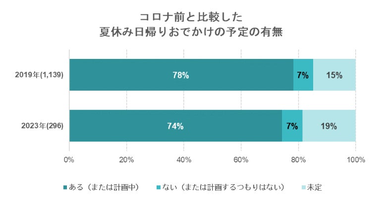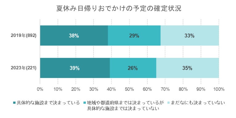 夏休みの日帰りおでかけの予定確定状況についても、今回と2019年の結果と比較しました。