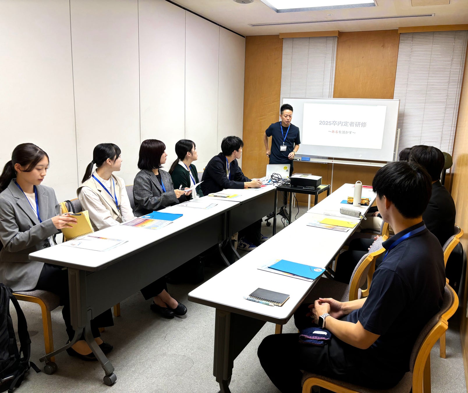 社内研修は現社員と内定者の二手に分かれ、実施しました。